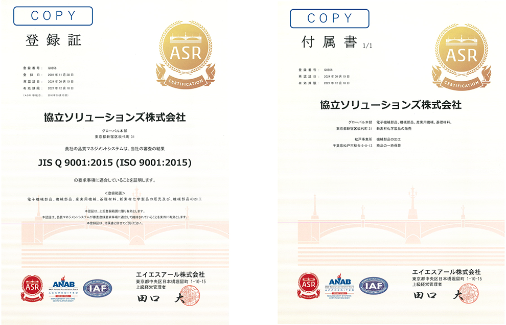 当社は、産業用機器・機械部品・電子部品の販売、機械部品の加工及び設備工事・機械の据付工事の設計から施工、