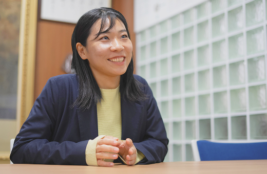 入社の決め手は、人事担当者の温かい雰囲気と“人を大切にする社風”。現在は事務職としての業務にとどまらず、新しい挑戦にも積極的に取り組んでいる。
